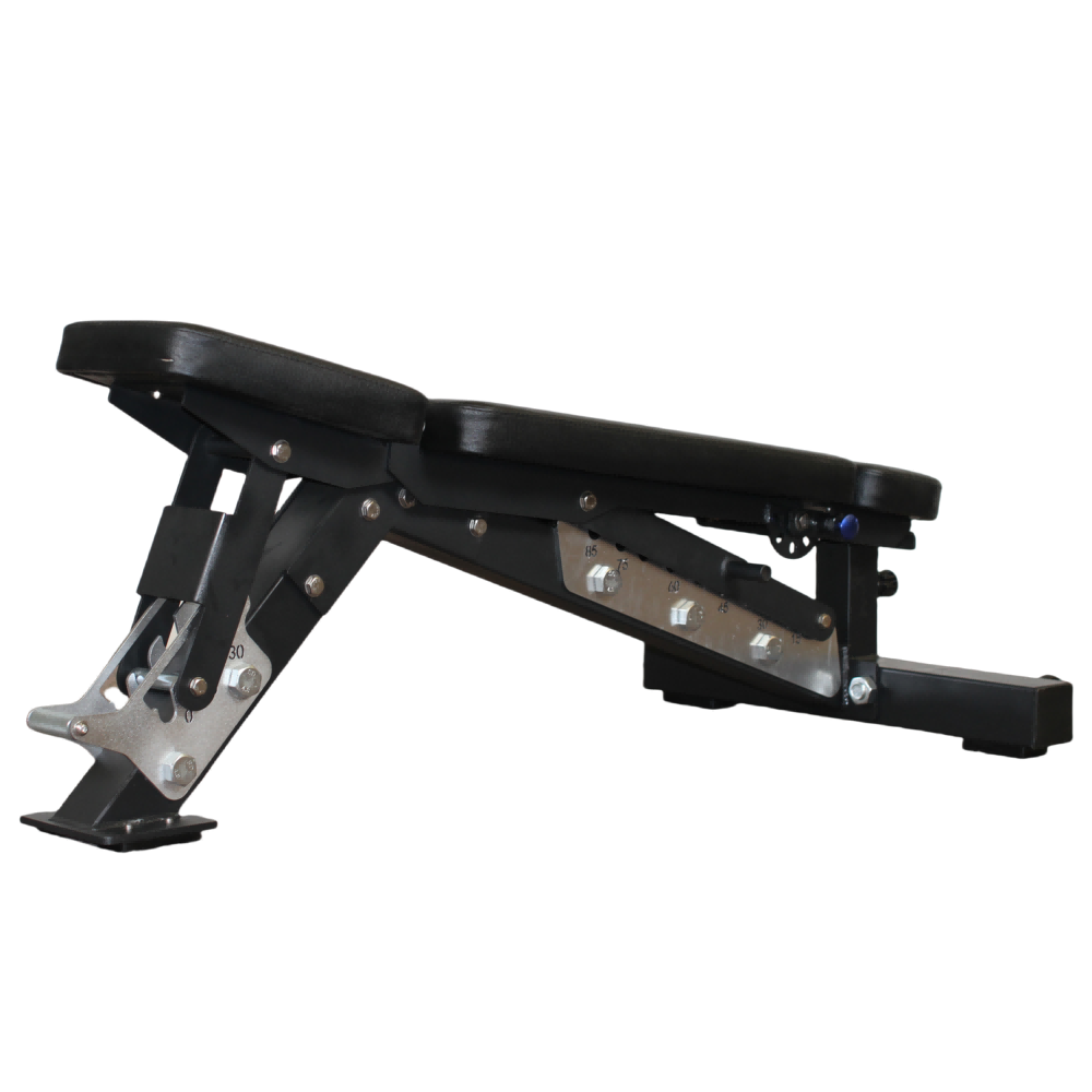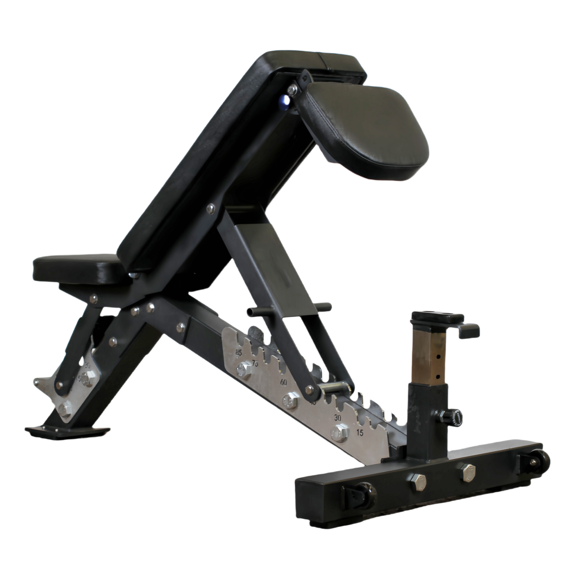Sorotan paling gedhe saka Bangku Abdomen sing Bisa Disetel iki yaiku sistem penyesuaian presisi multi-posisi sumbu dual: