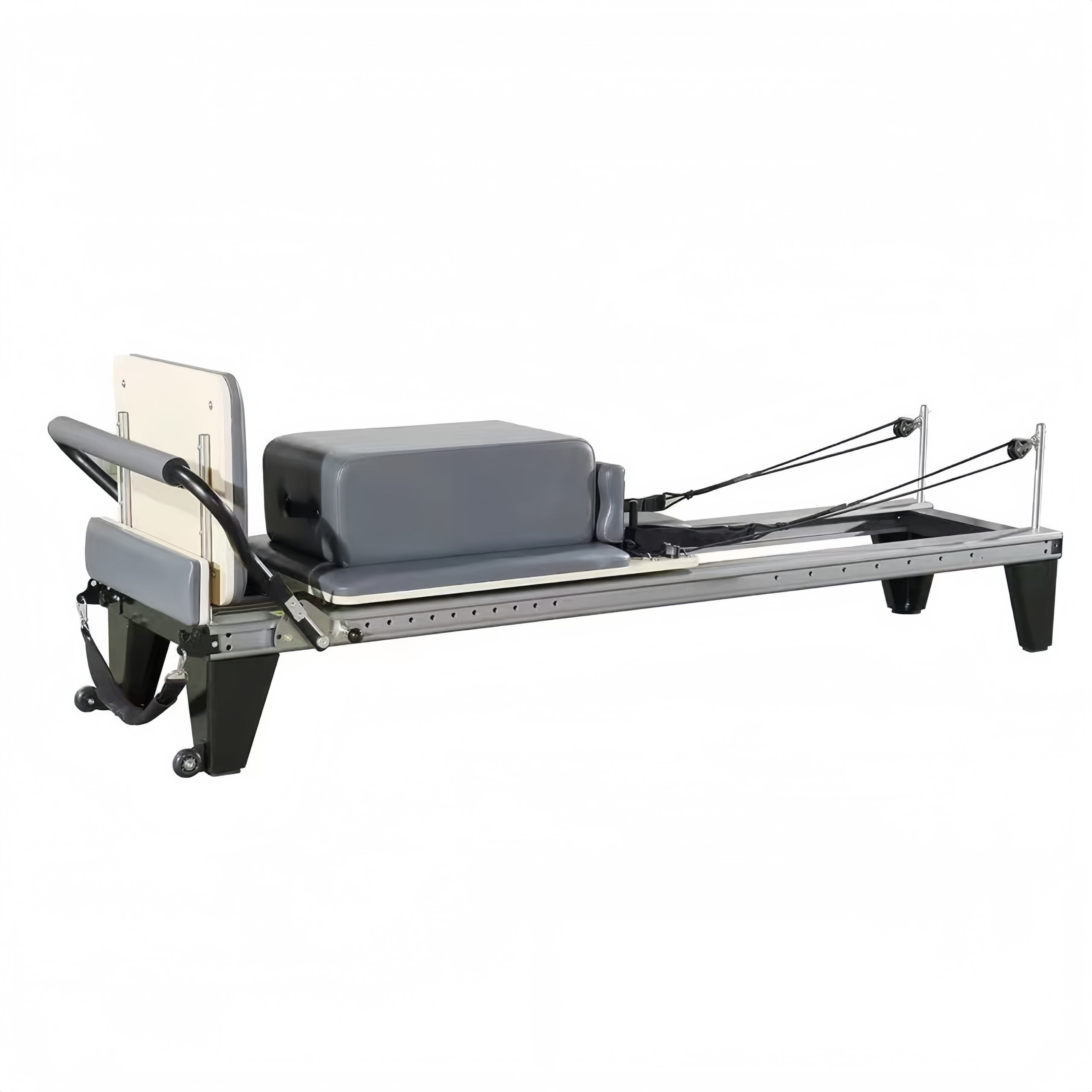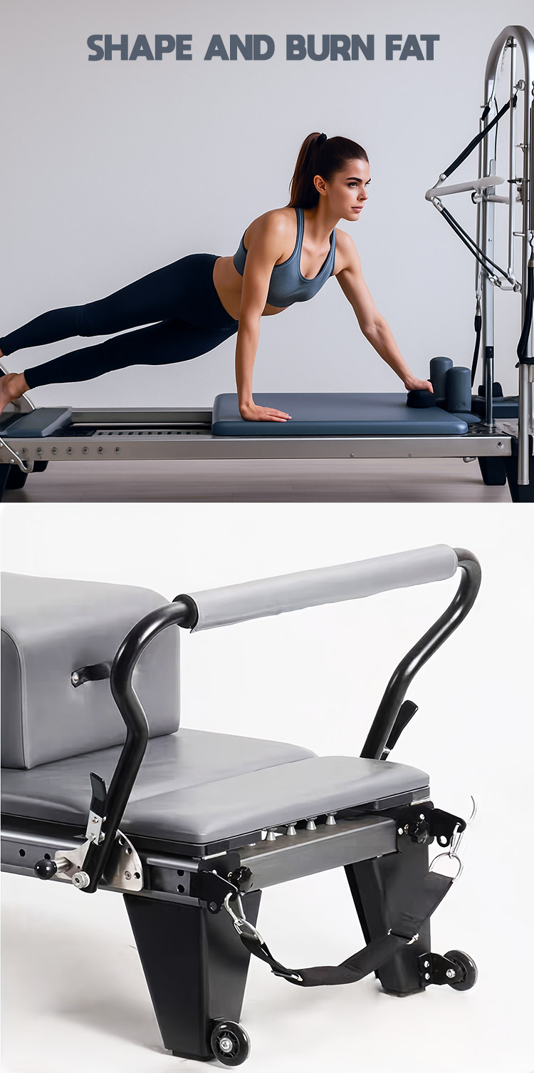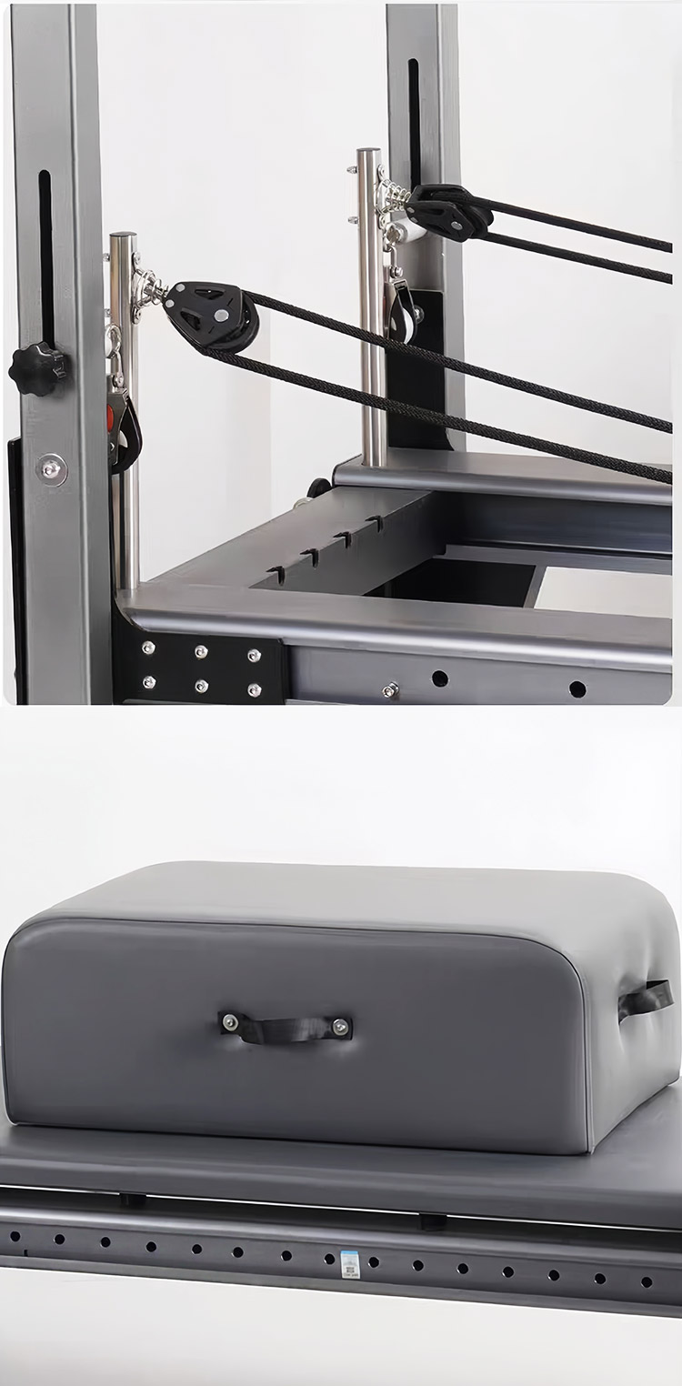 Dibangun kanggo panggunaan profesional jangka panjang, Reformer Aluminium nggabungake lapisan bubuk elektrostatik sing tahan gores ing pigura paduan aluminium, tahan karat, nyandhang, lan kringet. Fitur rincian ergonomis kayata footrests luwes, nangani multi-posisi, lan dhuwur-elastisitas bantal non-slip kanggo pas kabeh jinis awak, mesthekake comfort maksimum sak latihan. Garis kothak gerbong mbantu nyelarasake gerakan sing tepat, dene platform sikil non-slip, katrol anti-detachment, lan sikil dhukungan sing stabil njamin latihan sing aman lan tanpa goyangan tanpa gangguan swara.