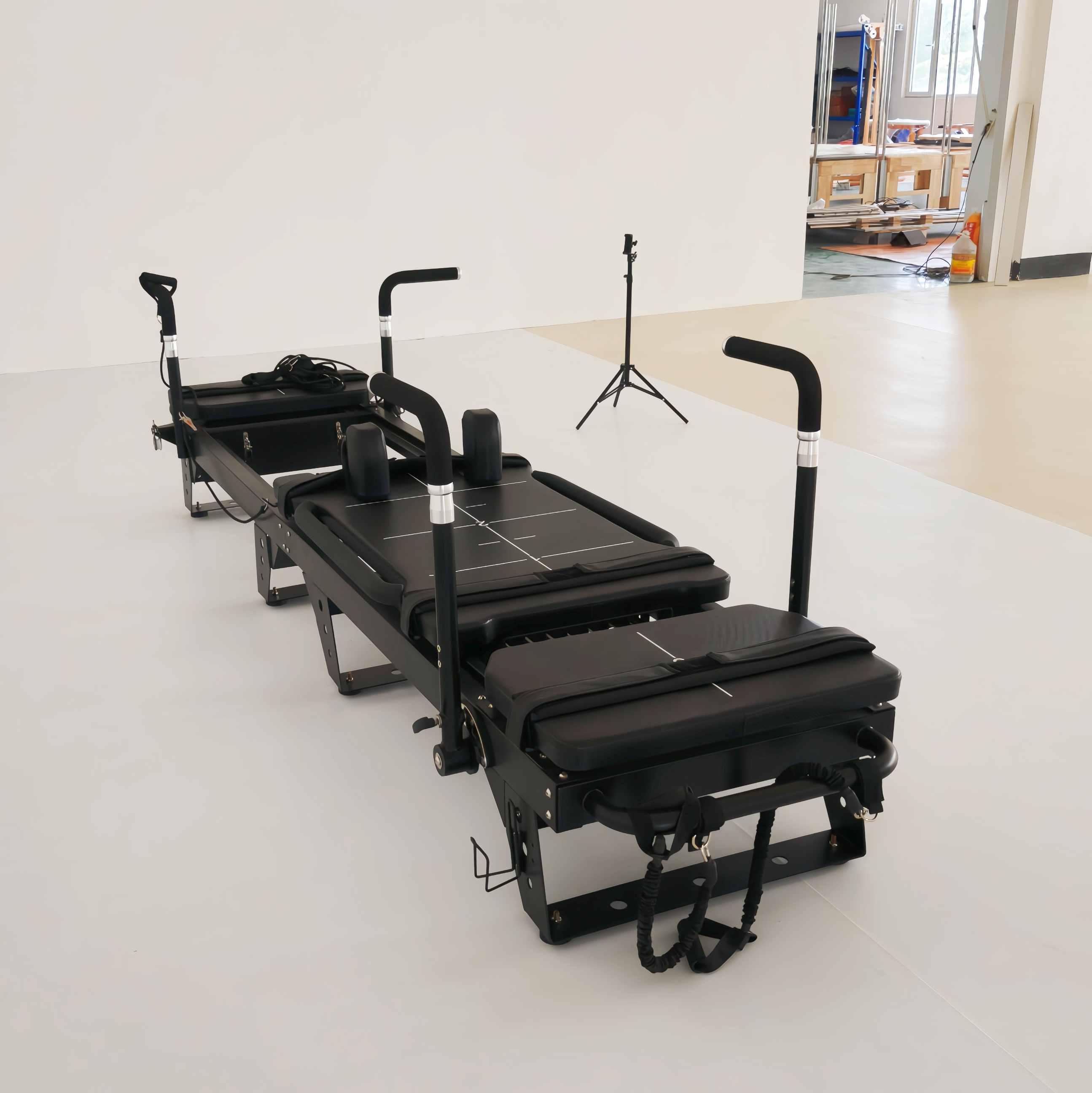 Kanthi dimensi sing dioptimalake lan konstruksi sing padhet, Mesin Pembaharu Pilates cocog karo ruang komersial modern. Ukuran 3230 * 885 * 980cm, cocog kanggo tata letak studio. Kanthi bobot 163 kg (359.4 lbs), bobote sing gedhe njamin integritas struktur sing luar biasa kanggo panggunaan profesional kanthi frekuensi dhuwur kanthi jangka panjang.